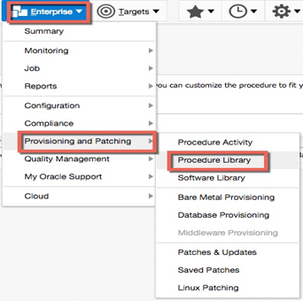 - Access the Procedure Library (Enterprise -> Provisioning and Patching -> Procedure Library