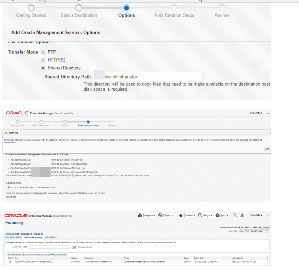 This section will focus on how to add another Oracle Management Service (OMS) to the existing Oracle Enterprise Manager 13c infrastructure. This approach is one of the ways which this process can be done.